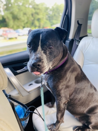 Hey there! I’m Riann, your new best friend. I’m a lovable senior pit bull/blue heeler mix with a heart as big as my smile….