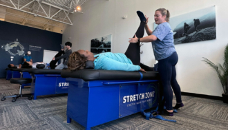 “We call it lazy yoga,” says owner Landon Cheviron of sessions at Stretch Zone Cary. “We do all the work, and they get all…