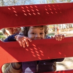 - Matthew Murphy takes a peek through part of the playground at Urban Park in Cary.