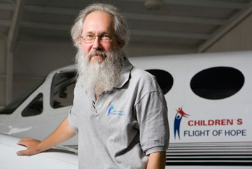 Scheer heard of the organization in the mid ’90s from some of his fellow pilots while he was a broadcast journalist for WUNC radio. Scheer wanted to be involved from the day he heard of Children’s Flight of Hope, but his radio hours were not compatible with Flight of Hope.