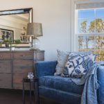 One of Amanda’s favorite elements came as a surprise to the client. At a spot in the kitchen surrounded by windows and natural light, the model home had displayed a large farm table. Amanda knew the space could provide more — somewhere to enjoy a coffee or catch up on a good book. Even with the help of a 3D model, she wasn’t sure the client shared her vision. But as soon as the sectional was placed and the homeowner drank her first cup in the morning sunshine, she was a believer.