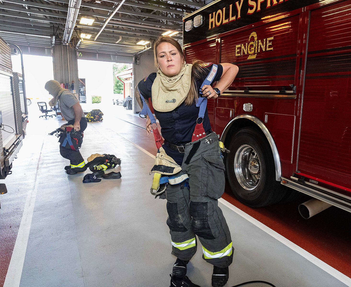 In addition to Kendall and her crew on Engine 2, four other female firefighters serve the Holly Springs Fire Department, spread throughout the other stations and shifts.