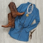 Chambray shirtdress, $38, Pink Magnolia Boutique