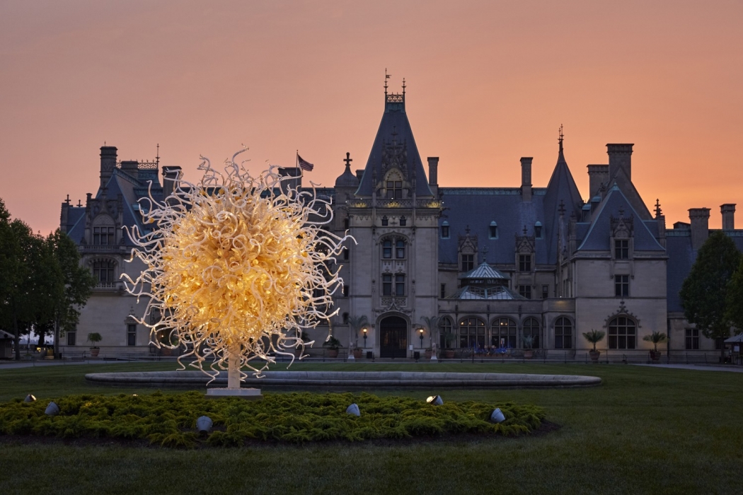 The historic residence’s iconic grounds provide the ideal setting for Chihuly’s world-renowned work. Chihuly at Biltmore is the first garden exhibition of his art in North Carolina.