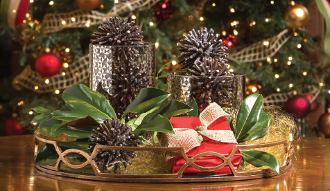 “I’m seeing more of a trend to adjust the traditional holiday red and green to fit with the color scheme of your own interior spaces. You can do a lot even without color. Get some greenery and add sparkle. If all else fails use whites and creams, and then you can carry the look into January.”
