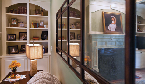 Keeping the process simple, Serany didn’t change the paint color for the whole room, but she always adds a personal touch to her design projects. “We added splash of color on the back of bookcases for visual interest,” she said. In addition, she accessorized the bookcases with photos and other items the Gebhardts had on hand.