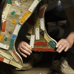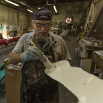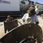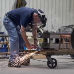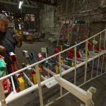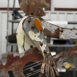 Stripped to bare metal, whirligig pieces are then coated in primer, epoxy, two coats of industrial paint and lastly, clear protectant. Joe Justice has been part of the project since its start.