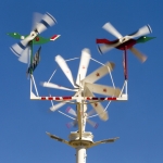 You’ll wonder how you ever lived without whirligigs once you see them, rising into a blue sky, twisting and swirling and clanking in the breeze, as modern marvels of mechanical whimsy.