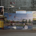 The two-acre finished park, designed by Durham firm Surface678, will feature a covered pavilion and sidewalk grids that mimic rows of tobacco laid out at auction. It will host the downtown farmers’ market, educational programs and outdoor concerts. A water feature is also planned.