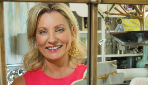 Allen working at the home of design client Tanya Harvey; after opening Ivy Cottage Collections as a gift shop in 1995, customer demand led Allen back to school to study interior design.