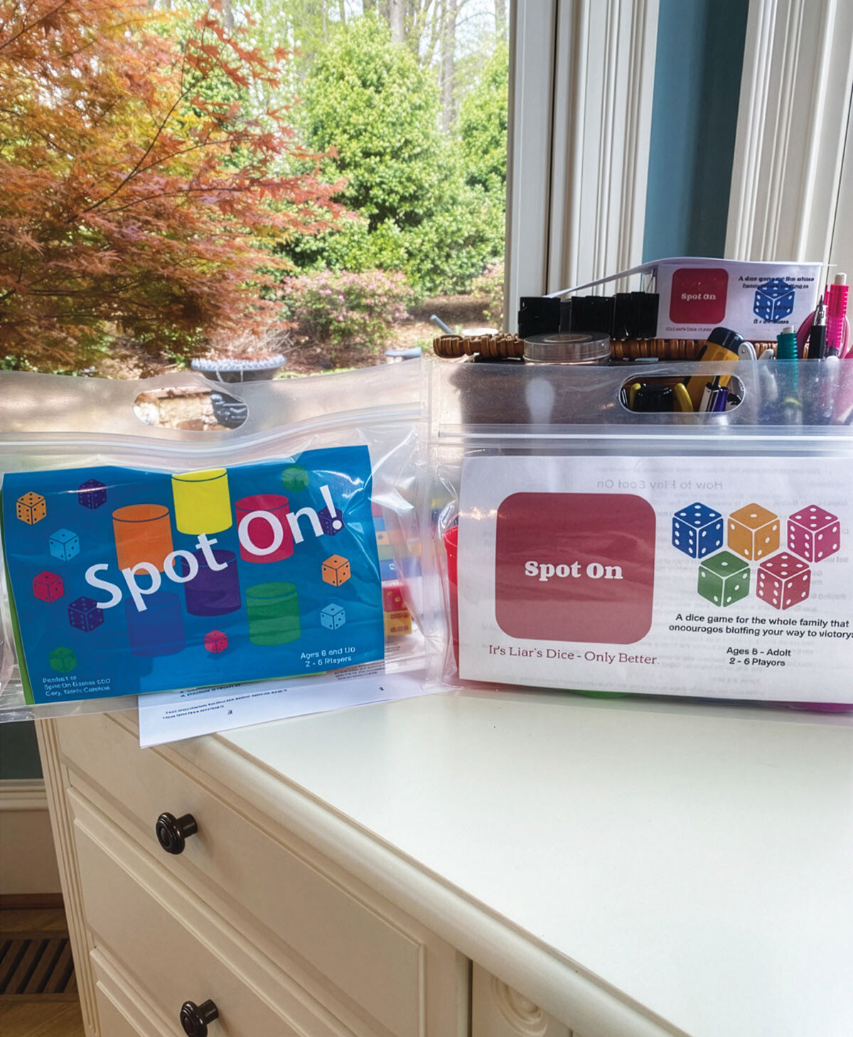 The addictive family-friendly dice game is the debut title of Spot On Games, which was founded in 2024 by Cary residents Linda and Sue. That’s Spot On! was released on April 1, 2025, and is designed for 2–6 players ages 12 and up (though savvy youngsters will also enjoy it). The quick playtime runs 15–30 minutes.