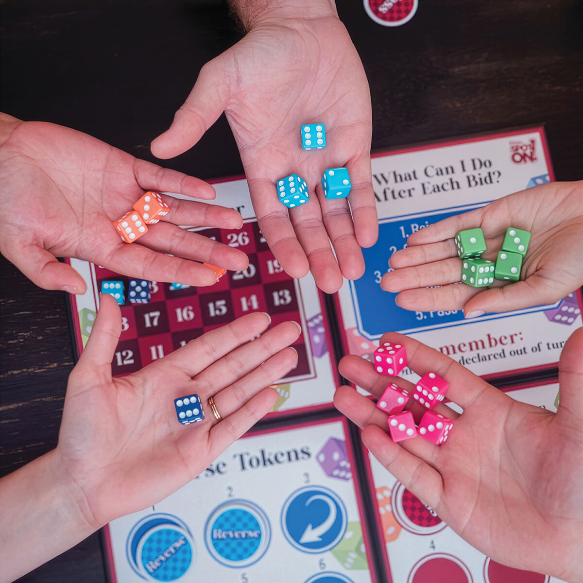 The game’s tagline is “It’s Liar’s Dice — Only Better.” After purchasing the original bluffing dice game for her son at Christmas, Linda observed: “There were things that I didn’t like about it that we changed within our family. I just changed the rules myself, and instead of Liar’s Dice, we called it Spot On.”