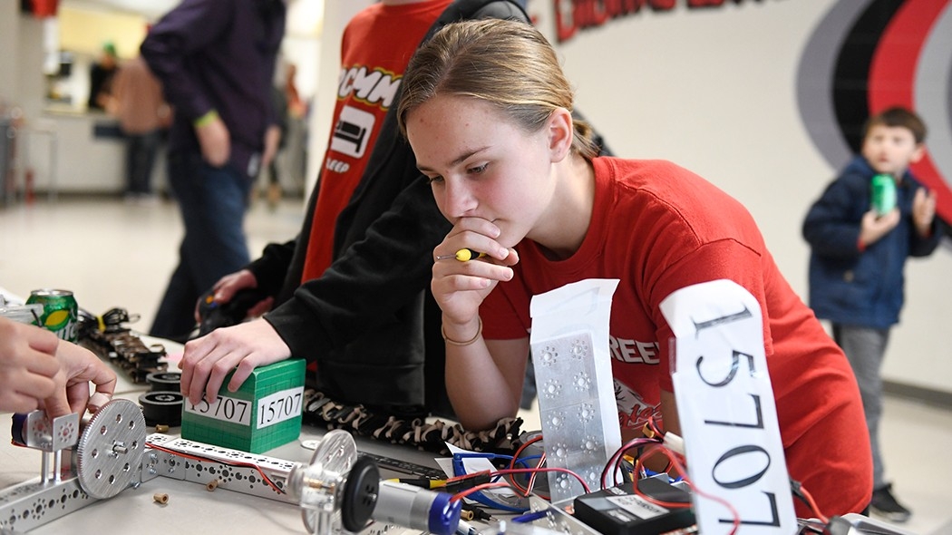 Aileen Roorda works on her team’s robot at Reedy Creek. Aileen is part of the First Tech Challenge Robotics Team at the middle school.