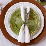 “For formal tables, use chargers. It’s that extra detail that really sets off the table. These can also be used as serving dishes for informal buffets, so they’re a great staple to have on hand.