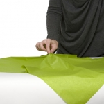 “Use double-sided tape or glue dots to create a clean look. When folding down the side flaps of the paper, press a seam on the folds to create nice crisp edges.”