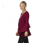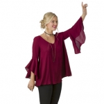 This blouse, $34, adds a pretty detail at back, to complement its on-trend bell sleeves; see full look on page 29. Black and gray choker-long necklace combo, $34.
