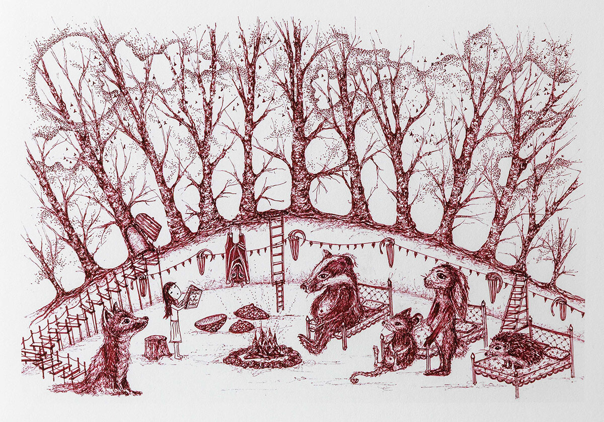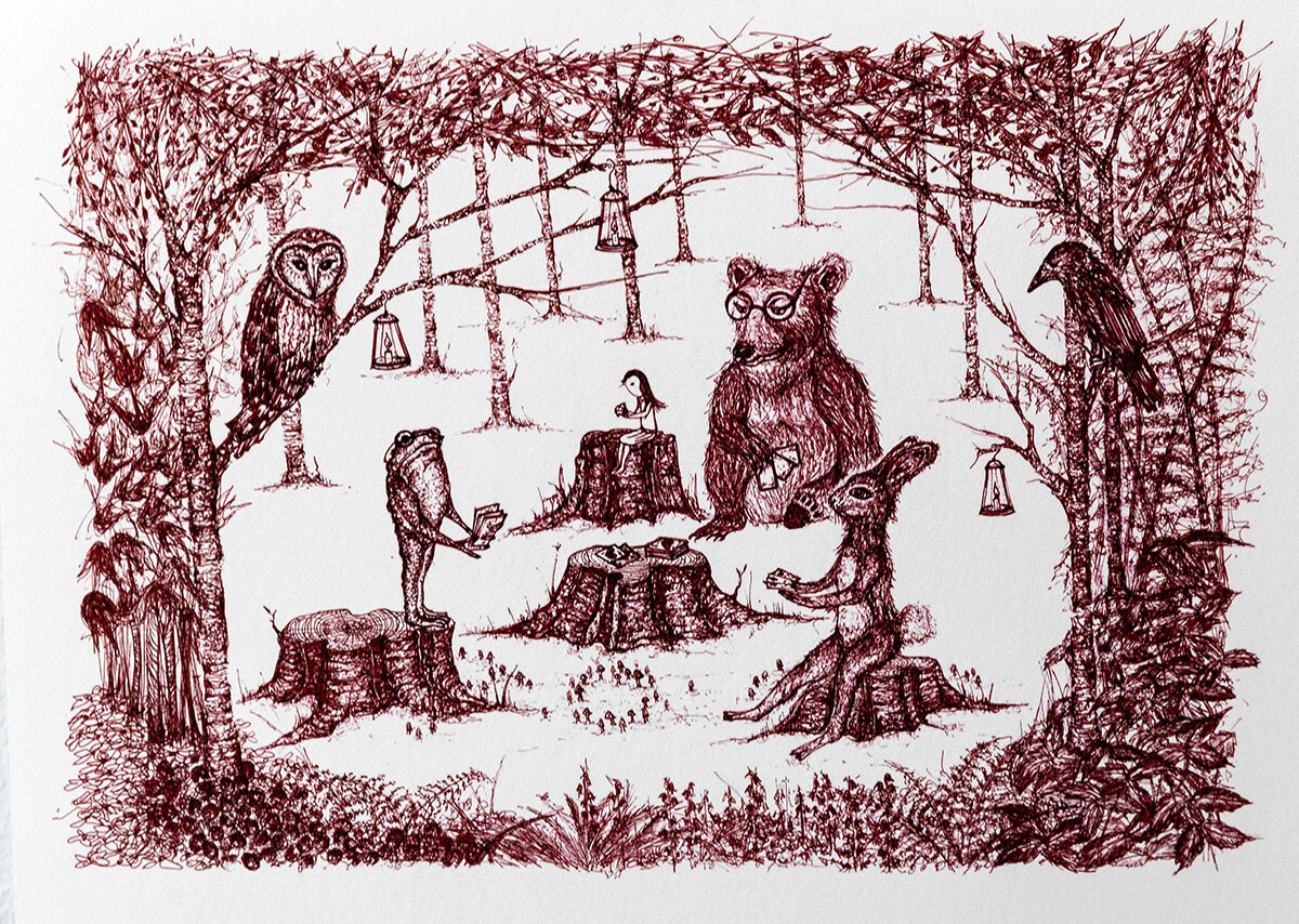 In a series of drawings, Tiny explores a whimsical world full of nature, animal friends, and cozy settings, forming a visual diary called My Tiny Beautiful Life, which includes hundreds of stories that can be found on tinyherotales.com.