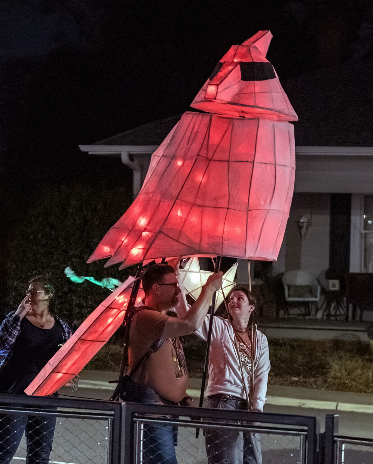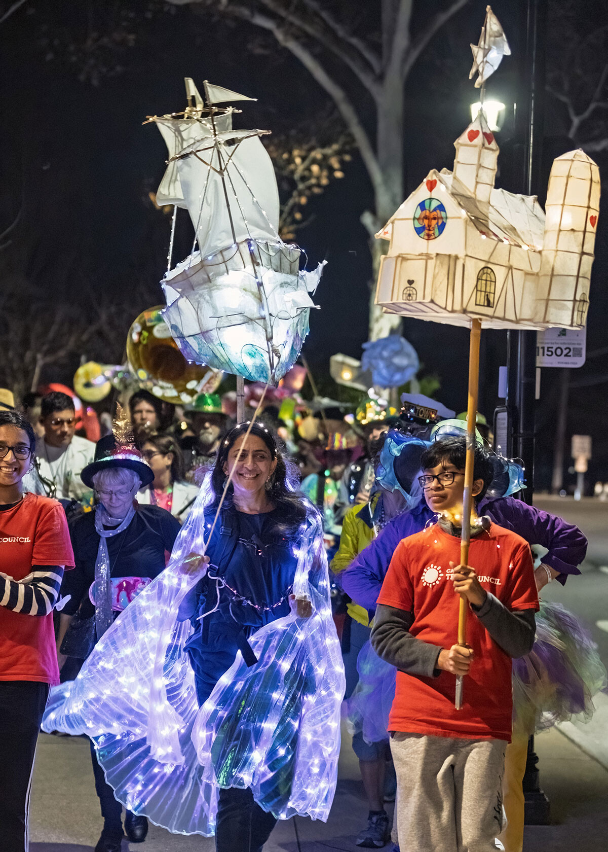 Gowri and Angelo moved to Cary in 2020 — “I loved the multiculturalism of the town, the amount of arts that were here, and the amount of outdoor spaces” — and not long after partnered with Denise Dickens, public art supervisor and curator of exhibitions for the Town of Cary, to start a lantern parade tradition in the Triangle.