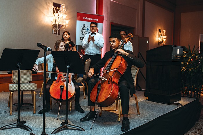 The annual Kidznotes Grow Gala, held at the Umstead Hotel and Spa, is the organization’s biggest fundraiser. The 2020 event, held Feb. 15, raised more than $100,000 to support students and the program. Kalafatas says the event is also a great opportunity to connect young musicians with professional mentors.