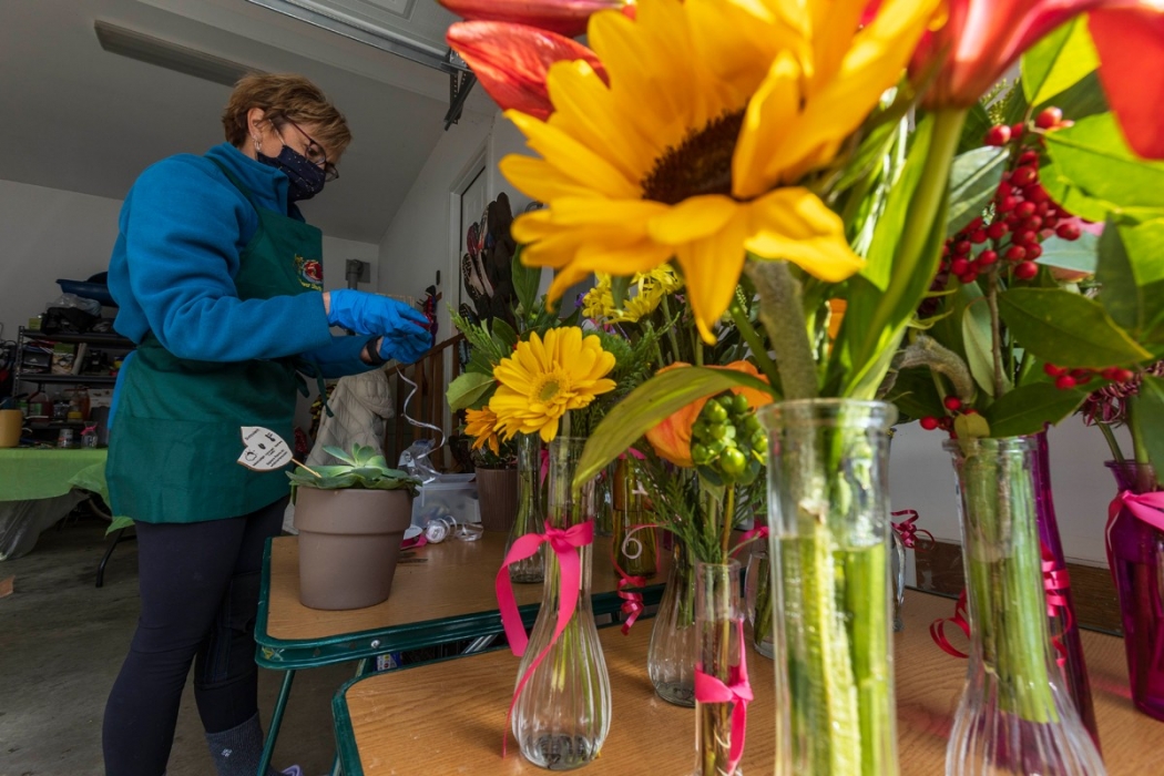 The Flower Shuttle provides floral arrangements to Transitions LifeCare’s hospice home patients. The smaller bouquets go to the patients and their families, while the larger arrangements sit in the public areas of the facility.