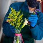 Flower delivery in the time of COVID-19 has been challenging. The Flower Shuttle volunteers haven’t been able to meet together as a large group to work on bouquets. Instead, smaller groups, of three to six people, meet throughout the Raleigh-Cary area.