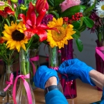 After flower pickup, the teams unwrap and clean the blooms and form them into bouquets and floral arrangements. The flowers are then delivered to locations across the Triangle, such as community living centers, rehab facilities and hospitals.