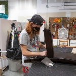 Volunteer Claire Williams tests donated lamps, making sure they are in good working order.