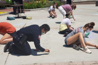 Moved by the death of George Floyd and the protests in Raleigh this past weekend, two Cary High School seniors staged an art event…