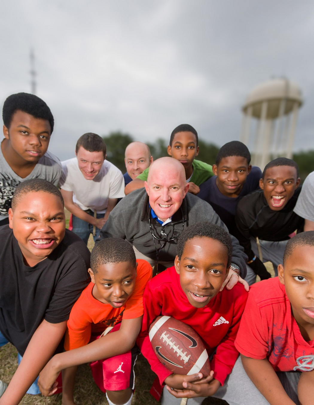For now, the tough after-school discussion is followed by a game of “no trash talk” flag football. On the field students, officers and teachers huddle over plays, and ham it up for a team photo.