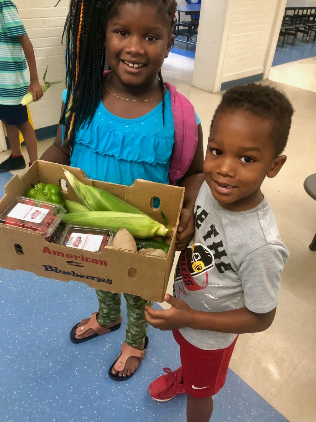 YMCA Campers show off the contents of their Produce Boxes.