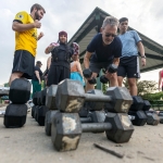 When it got hot, we invested in huge industrial fans, and we do laundry every day to provide our members with ice-cold towels. For the colder months, we bought jet-engine-style kerosene heaters, and we adjusted our workout to be more fast-paced to keep people moving. When it rains, we use shelter areas.