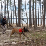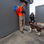 As the dogs get closer to their find, they return to get their owner’s attention. In training, Louis will play dumb and face her body away from where she knows the volunteer is hiding, signaling the dog to show her where the person is. The dog faces back toward the scent, takes off for the hiding volunteer and comes back once again to Louis.