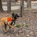 Once suited up, the dogs are given their scent to find. Within seconds of sniffing, they’re off to find the human it belongs to.