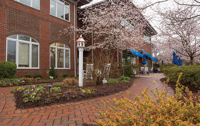 Open to the public, the gardens at Transitions LifeCare were created as a serene place for contemplation and healing. The labyrinth, located down the hill behind the sanctuary, is a focal point in the outdoor space.