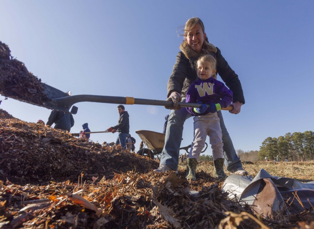 Melissa Dempsey of Cary was there spreading mulch with her husband, Troy, and their two children, 3-year-old Lily and 5-year-old Liam.