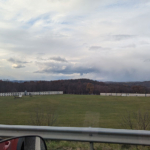 - Scenes from the passenger seat, from a snow-dusted departure, past rolling hills and roadside attractions.
