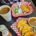 The doors are locked. Odd. So we walk to a hole-in-the-wall restaurant in the adjoining shopping center and have the best meal of the trip: birria tacos and ramen.