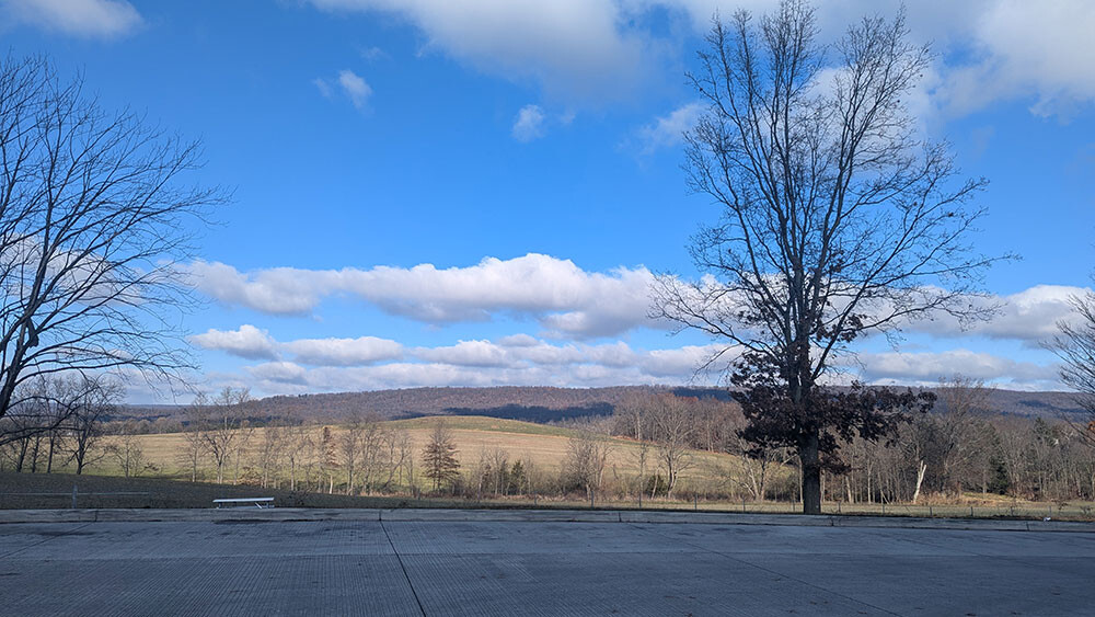 Take two: We make it up the hill again, pass a row of cabins, and arrive at the correct location: a single pull-through RV spot with a clear view of the resort’s pond and scenery.