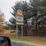 About 20 minutes before sunset, we arrive at the office, check in, and purchase a sewer hose and obligatory “Virginia is for Lovers” sticker. Snow rolls into the campground with us and picks up as we approach the “hit the gas and don’t lose your momentum” hill. I confidently instruct Justin to go right at the fork at the top … which puts us nicely on the road back to the office instead of our site.