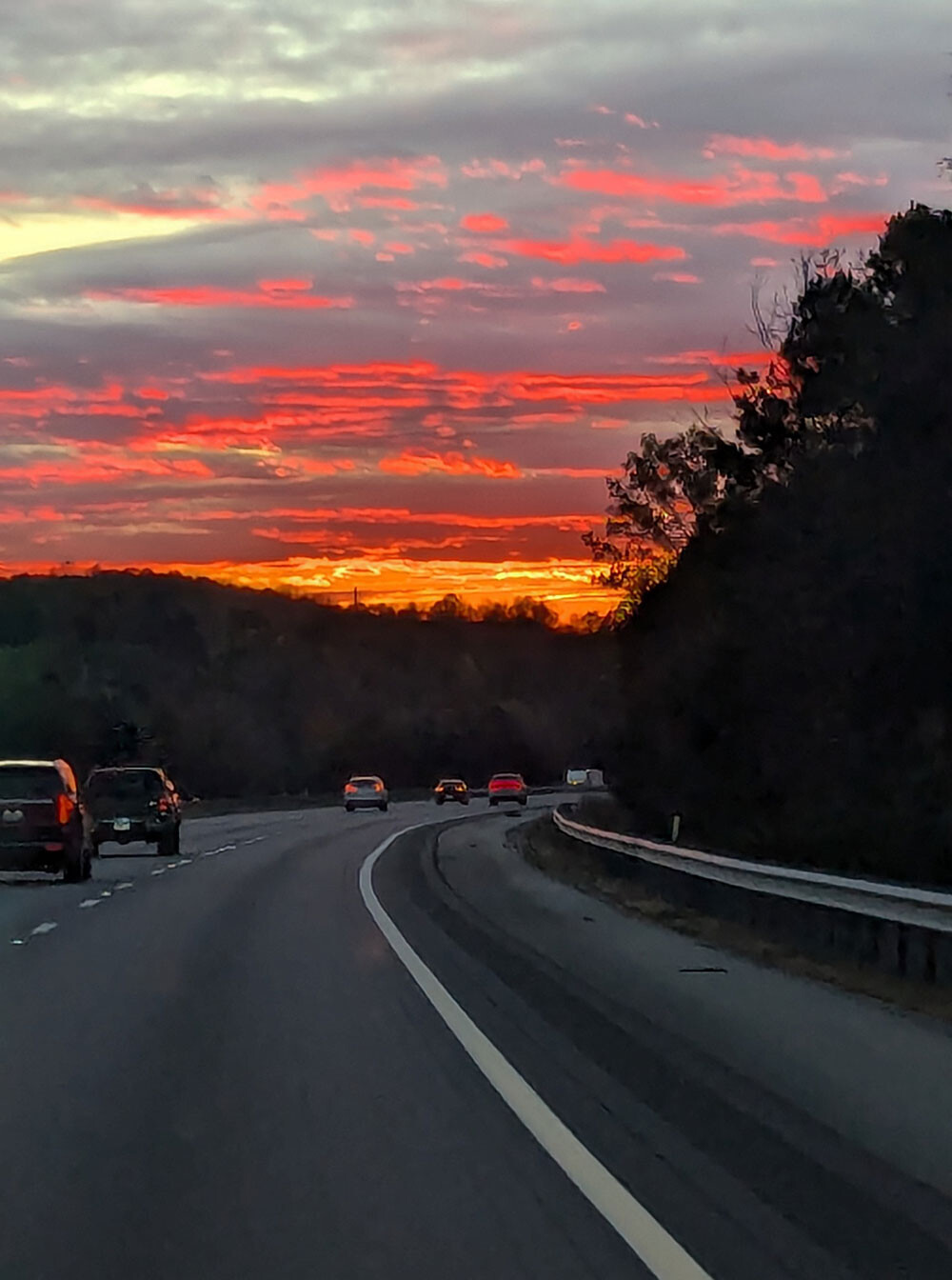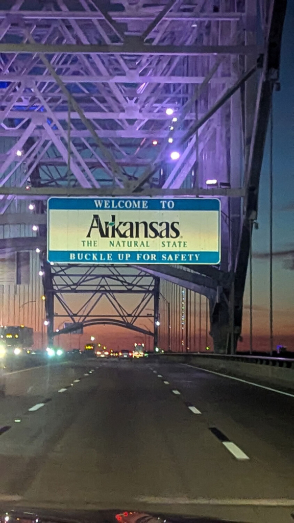 We drive through Tennessee for what feels like an eternity before hitting Arkansas. My notes from the day include little more than a rest stop with a poorly marked walking trail, funny billboards, and “population: 619,” a new-to-me level of sparsity. GPS alerts us to a traffic delay of well over an hour, and we find ourselves wishing we could teleport our way forward to Oklahoma.
