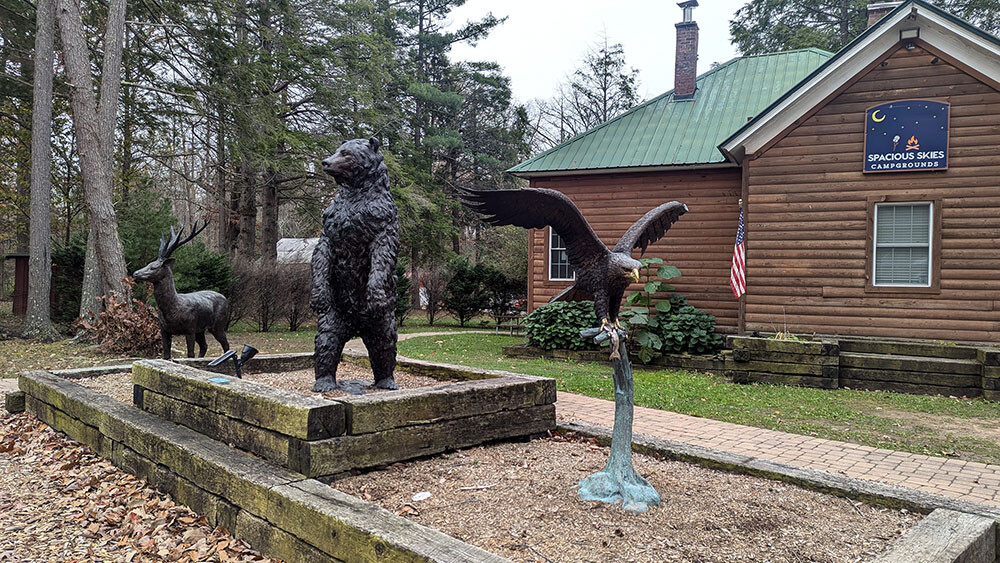 After popping into an auto parts store for detachable tow mirrors, we get back on the road, agreeing to stick to the park-by-dark plan. I google RV sites, pick one, and we call to book.