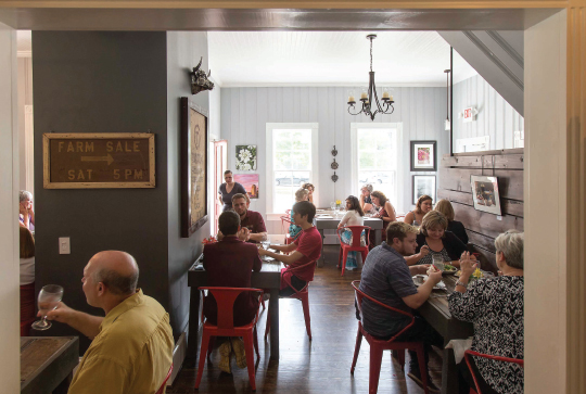 Walls are adorned with white-framed chalkboards, antique metal signs and purchasable pictures taken by Cary Photographic Artists.
