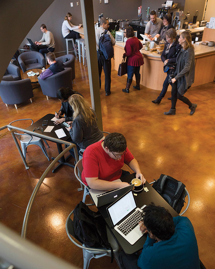 The coffee bar has become a haven for many regulars. An outdoor patio provides additional seating.