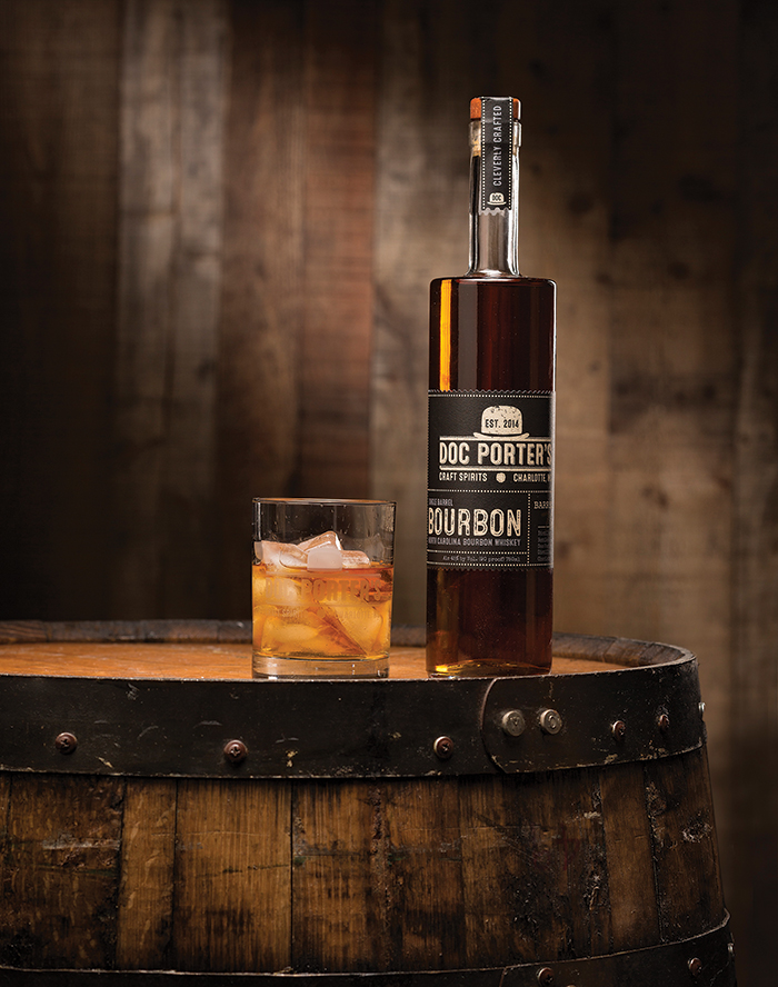 One of the most promising N.C. offerings is Doc Porter’s Bourbon Whiskey from Charlotte. Doc Porter’s is a grain-to-glass distillery started by Andrew and Liz Porter. With grains sourced from North Carolina, the distillery is producing vodka, gin, bourbon and rye whiskey. Their bourbon whiskey uses a “high wheat” blend of 60 percent corn, 30 percent wheat and 10 percent malted barley. It is milled, mashed, fermented and distilled on site and aged in new, charred American white oak barrels for a minimum of eight months. The bourbon ages in various-sized barrels — 15, 20 and 25 gallons — which the Porters say “allows for a more intimate interaction with the oak.”