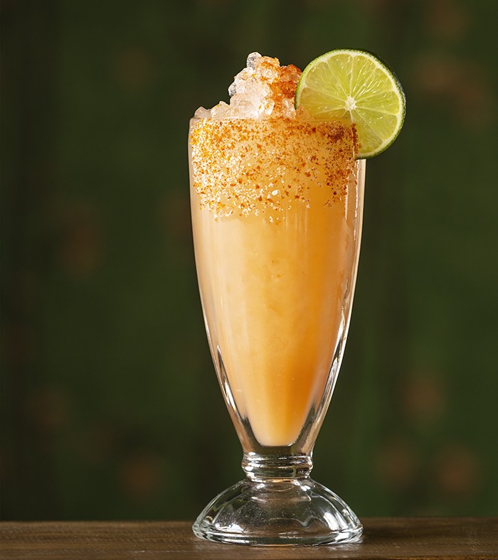 Strain the contents of the shaker over fresh ice into a glass rimmed in Tajin, a chili-lime seasoning. Garnish with a float of Aperol, if desired, and a lime wheel.