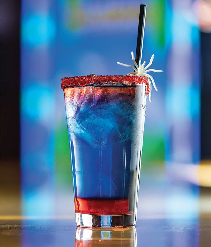 Garnish with a lemon wedge and a straw with a decorative spider.