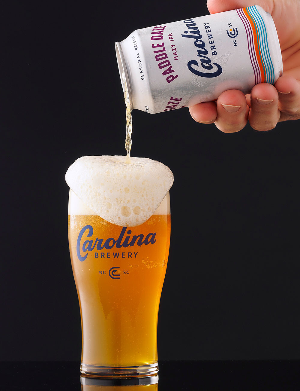 Carolina Brewery creates their seasonal packaging to tell a story. Return to warm spring days on the lake with friends with Paddle Daze. Citrus and tropical fruit aromas float above this smooth-bodied, hazy golden IPA. Paddle Daze has an ABV of 6.6% and an IBU of 37 with Chinook, Citra, Cryo Mosaic, and Idaho 7 hops.