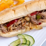 The slow-roasted rosemary pork also shows up in this popular sub, along with sautéed peppers, onions and horseradish aioli.