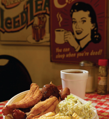 Among the hearty entrees available here are fork-tender barbecue pork ribs, country-style steak, meatloaf and — on Fridays — fried seafood. Side items such as steamed cabbage, black-eyed peas, squash and mac and cheese are all reliable stocks-in-trade.