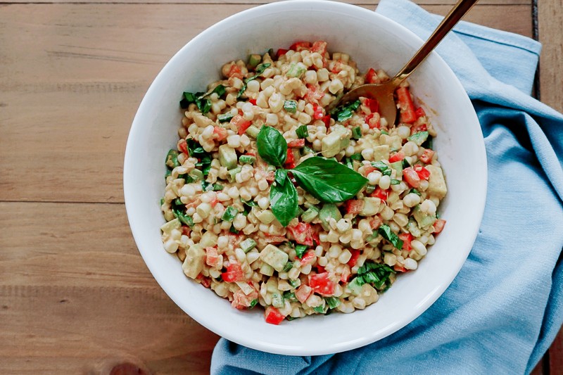 When it comes to food, one of the biggest highlights of summer is sweet corn. From corn on the cob to corn pudding, there are so many ways to use this versatile produce for your backyard cookouts. If you are looking for a fresh way to celebrate the season try this Smoky Corn & Basil Salad. Filled with other seasonal goodies such tomatoes and peppers, you’ll get a taste of multiple summer flavors in one bite.